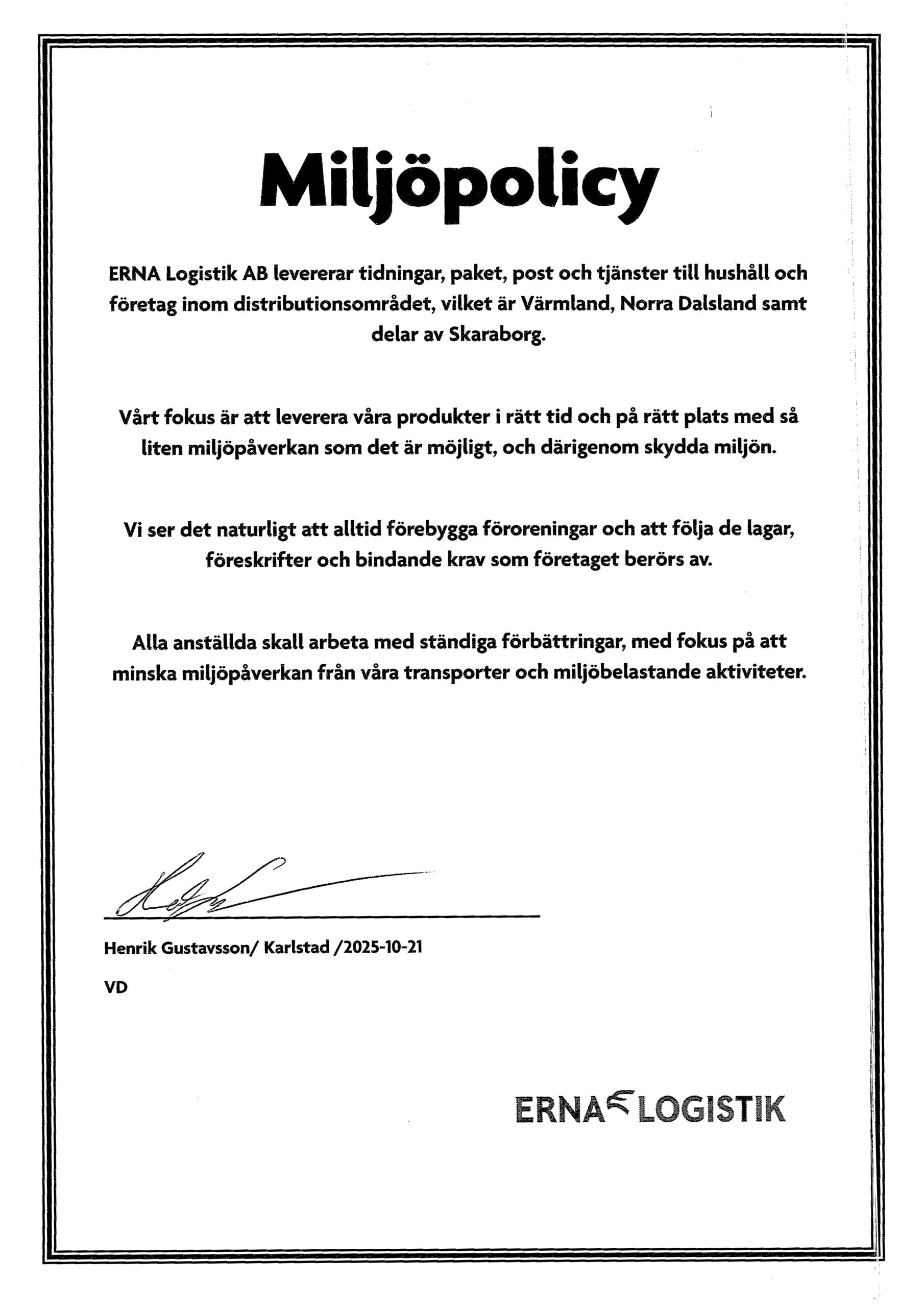 Genom vårt miljöarbete är vi certifierade för ISO 14001.